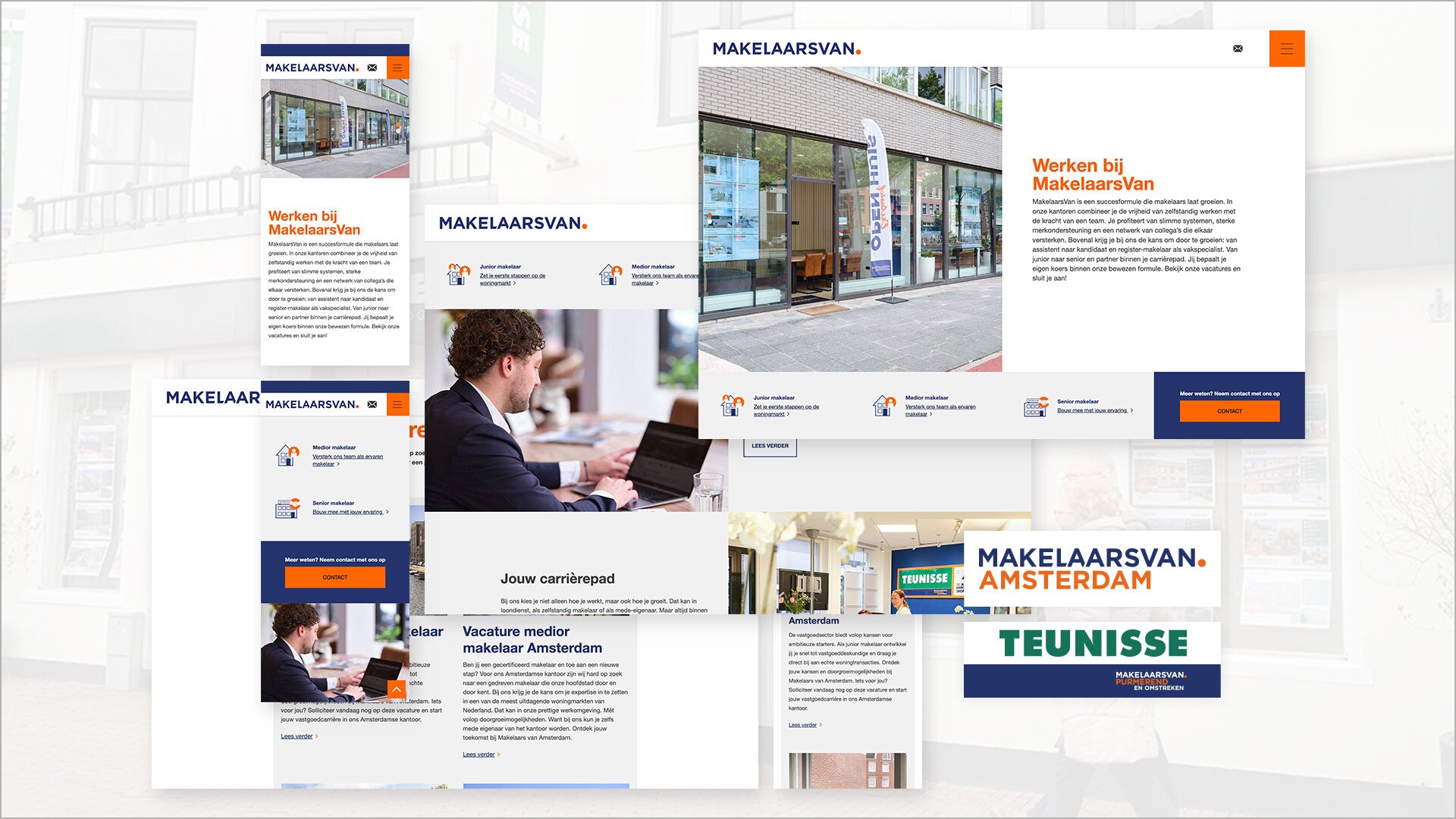 De website is in eerste instantie ingericht als recruitmentplatform. In de krappe arbeidsmarkt van de makelaardij is een sterke online aanwezigheid als werkgever geen luxe meer, maar absolute noodzaak. Het nieuwe platform versterkt dan ook het werkgeversmerk en stuurt bezoekers gericht door naar de lokale kantoorwebsites..